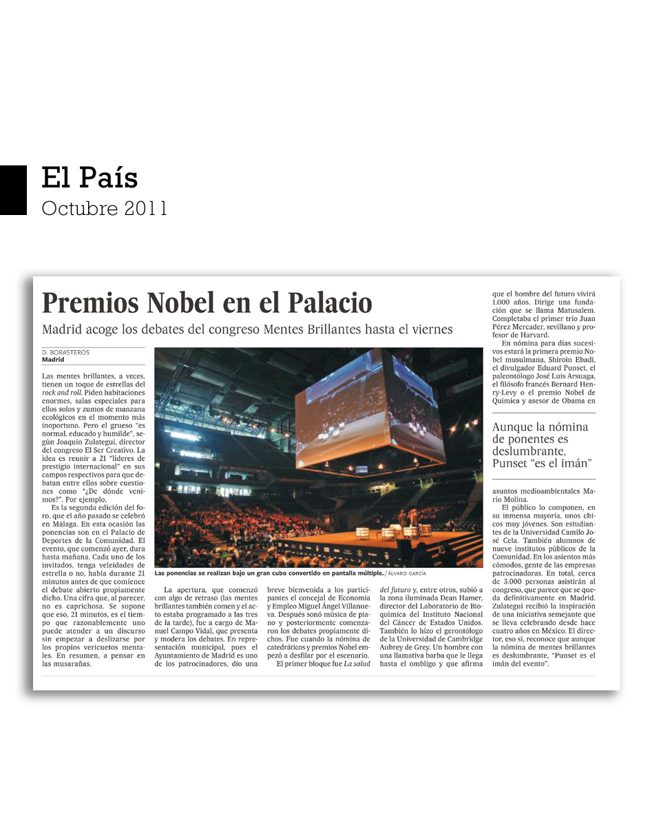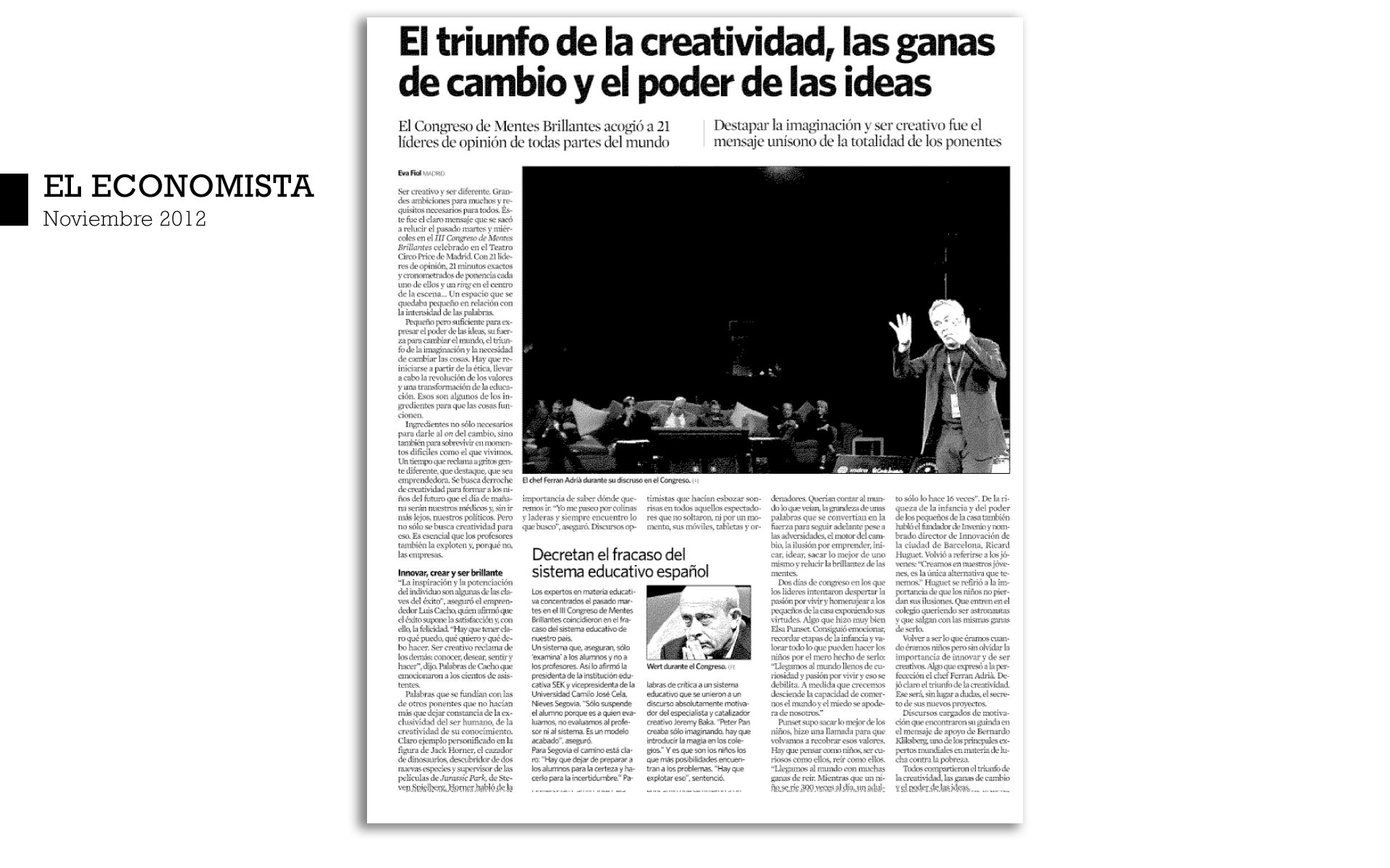 After four years of success, bringing together the most demanded personalities of our time, El Ser Creativo has been able to inspire attendees that faithful to their annual meeting, do not miss the congress of knowledge and creativity. This is what the Congress of Brilliant Minds is recognized for, an event that has brought together global experts in different areas such as Ferran Adria, considered the best chef in the world, named by Time Magazine one of the 10 most innovative people, José Antonio Marina, one of the most influential intellectuals in Spanish culture, Eduard Punset, the Spanish science popularizer, Jeremy Rifkin, an adviser to renowned politicians and heads of state like Al Gore or Bill Clinton, Guy Kawasaky, former Chief Evangelist of Apple and one of the world's leading specialists in the field of new technologies and marketing, Jody Williams and Shirin Ebadi, both Nobel Peace Prize winners or Ingrid Mattson, the first woman president of the American Islamic Society, among many others. The latest trends of the minds that have inspired attendees at 21 minute (the estimated time that the brain pays maximum attention)presentations that are now available in this online course without precedents.